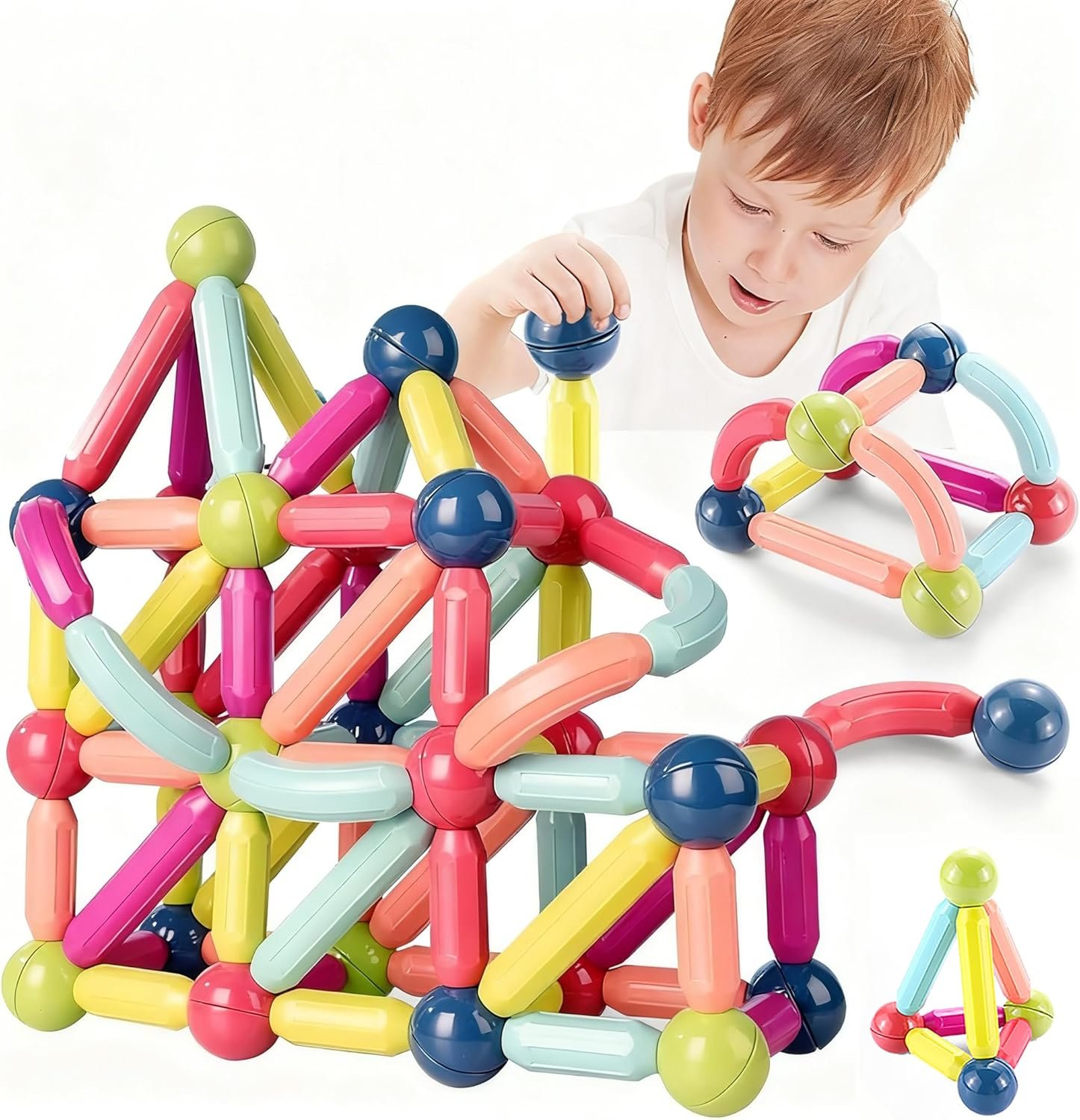 হ্যাঁ। magnetic balls + rods দিয়ে বাচ্চারা ফ্ল্যাট shapes (2D) থেকে শুরু করে টাওয়ার/হাউস/ব্রিজ (3D) বানাতে পারে।